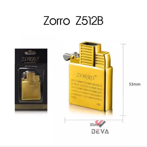 Ruột đồng thay thế Zorro chuyên dụng có thể sử dụng cho hầu hết các mẫu bật lửa Zorro thông thường, nhưng sử dụng gas.