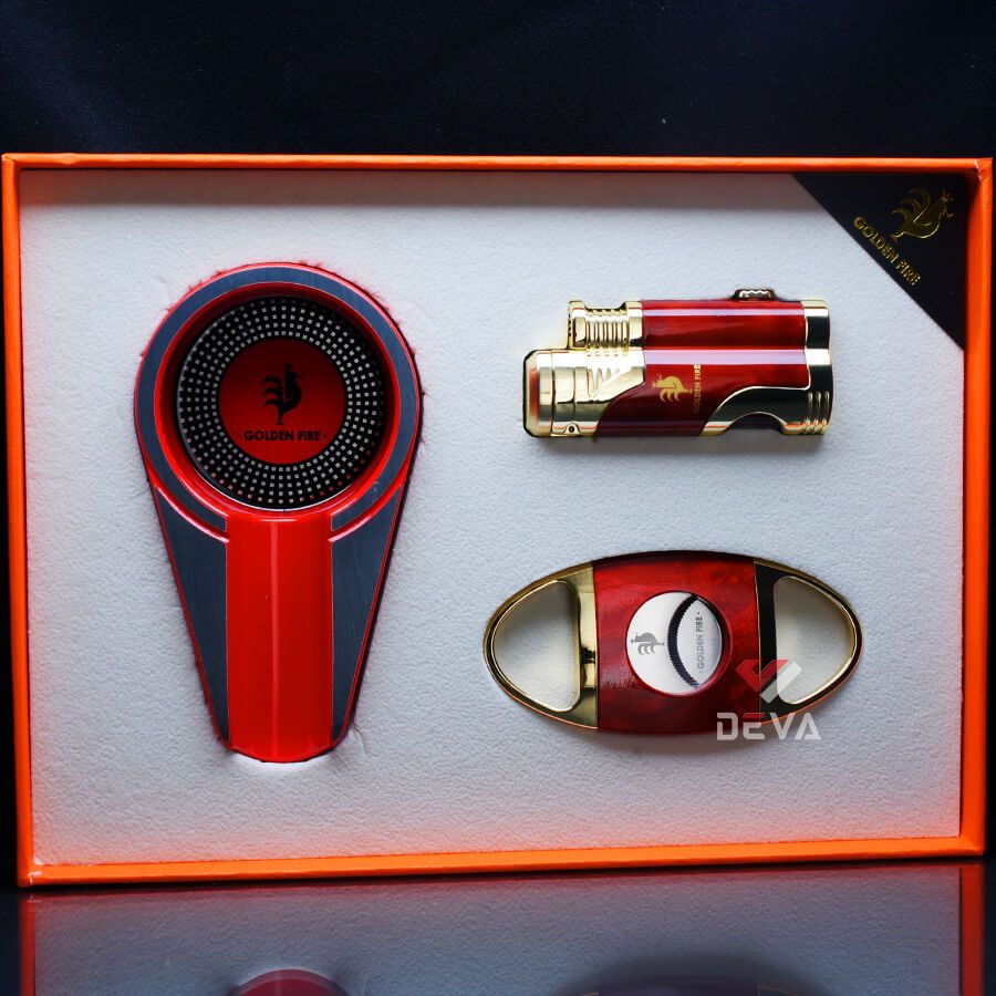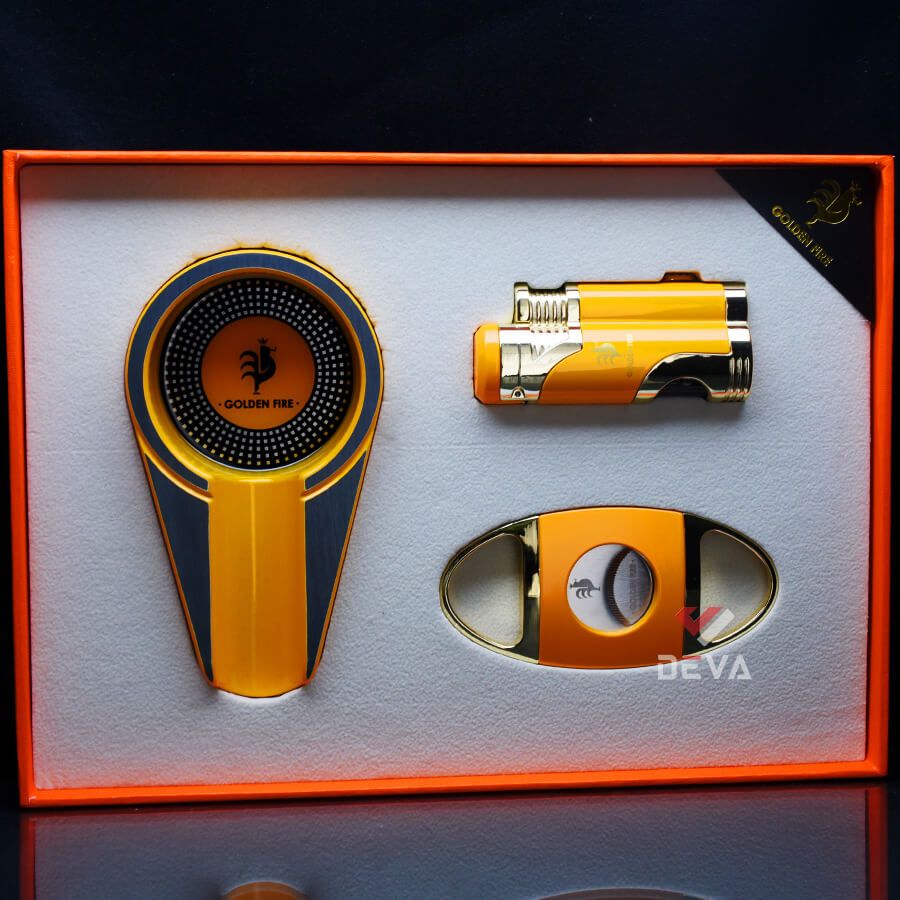 Set Phụ Kiện Xì Gà Chính Hãng Golden Fire Bộ 03 Món Bật Lửa Dao Cắt và Gạt Tàn HB359: