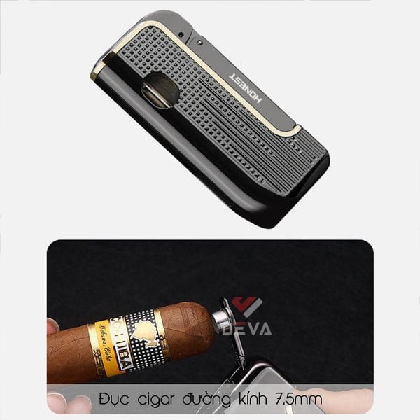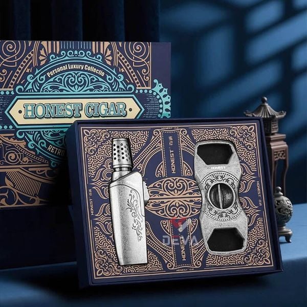 - Tối ưu trải nghiệm: Bật lửa khò Honest (Jet Torch Lighter) cho ngọn lửa xanh, sạch, không ám mùi, giúp bạn châm xì gà đúng chuẩn và trọn vẹn hương vị. Dao cắt kim loại cao cấp đảm bảo đường cắt ngọt, chính xác.