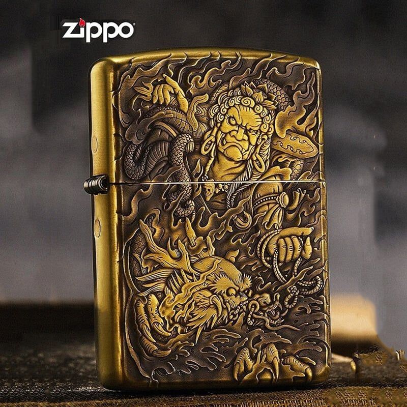 Bật Lửa Độc Đáo Set Zippo Armor Khắc Nổi 3D Thần vs Rồng ZD71