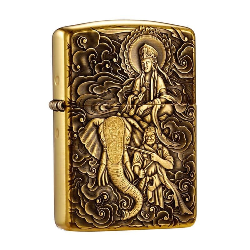 Set Zippo Armor Khắc Phổ Hiền Bồ Tát cưỡi Voi Trắng 6 Ngà ZD69