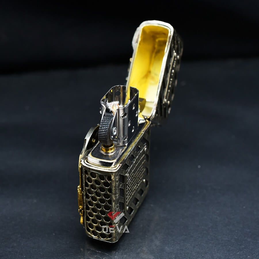 - Ruột Zippo: Ruột trắng/vàng không gỉ tiêu chuẩn với buồng đốt 16 lỗ (8 lỗ mỗi bên).