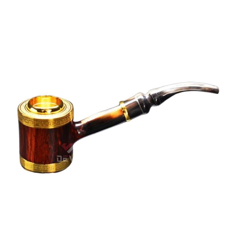 Tẩu Hút Xì Gà Cán Sừng Đế Đứng Hoa Văn Mạ Vàng Freesize TS12-1 Gỗ Cẩm:
