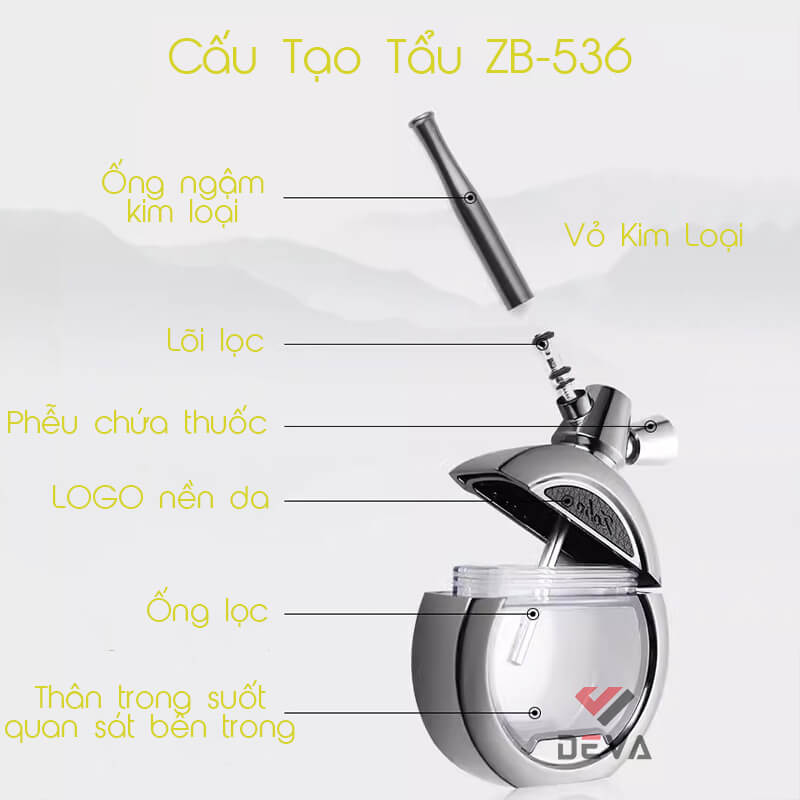Tẩu lọc nước Zobo cho thuốc lá và thuốc sợi ZB-536