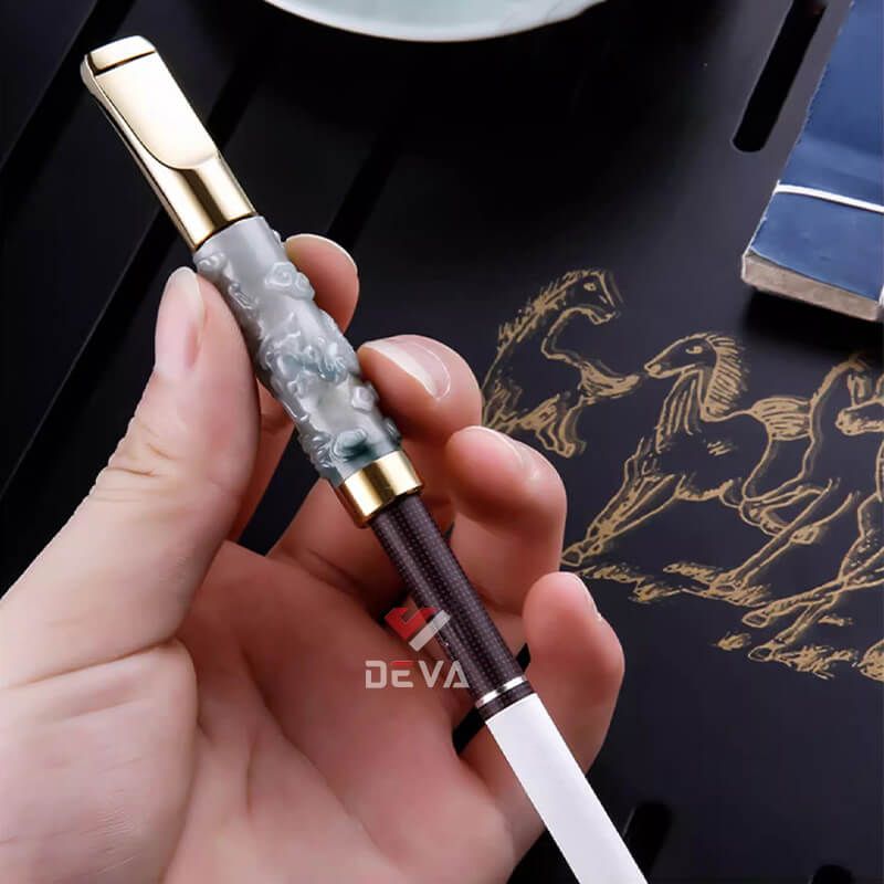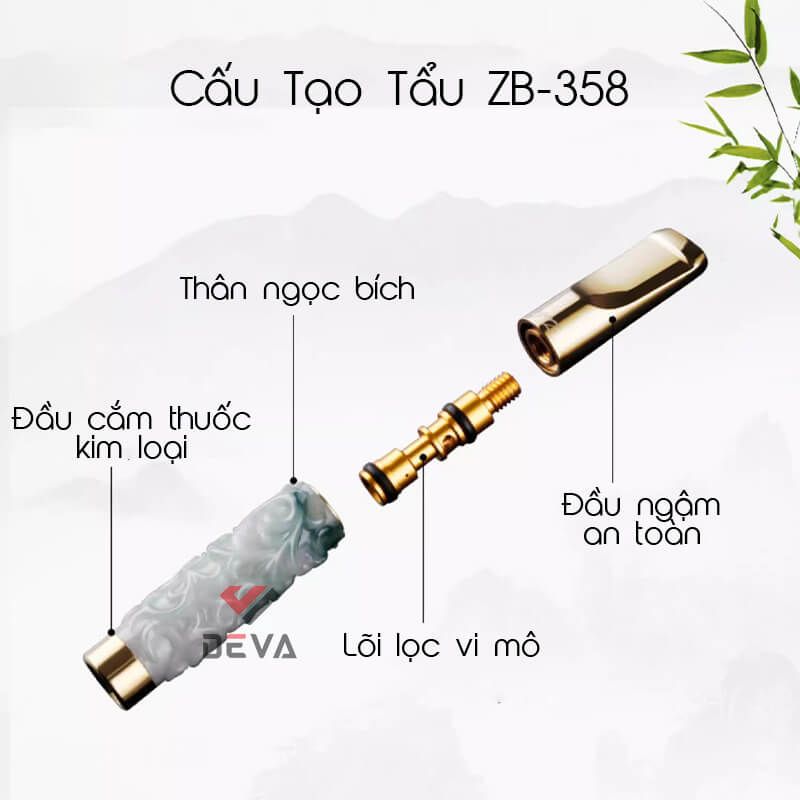 Tẩu lọc vệ sinh thân đá ngọc bích Zobo khắc hình nổi ZB-358