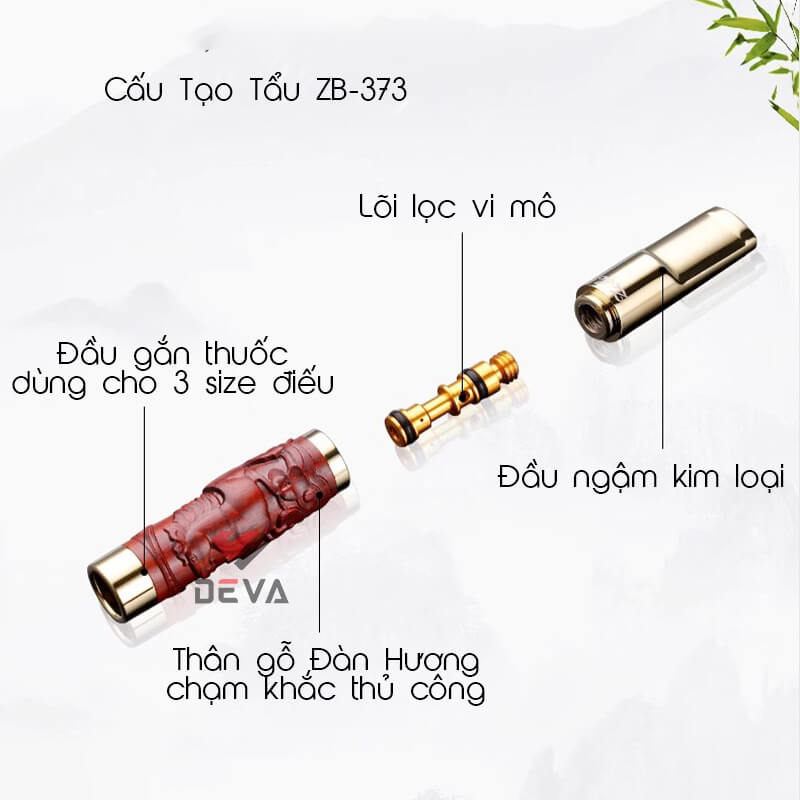Tẩu lọc thuốc lá Zobo thân gỗ khắc nổi 12 con giáp ZB-373
