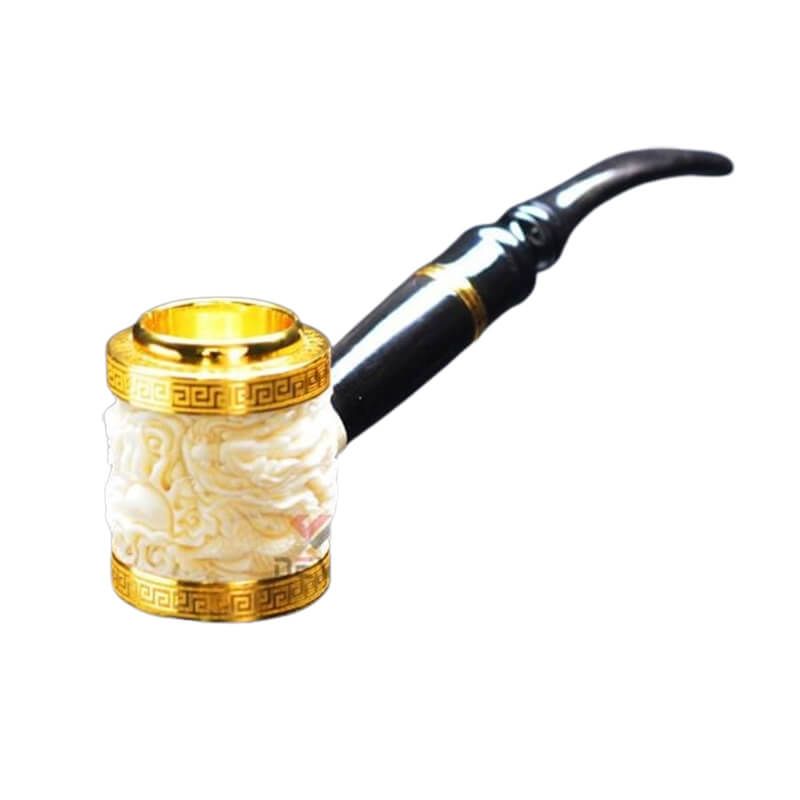 Tẩu Xương Hút Cigar Khắc Hình Rồng Trắng Ốp Hoa Văn Mạ Vàng Freesize Để Bàn TX02