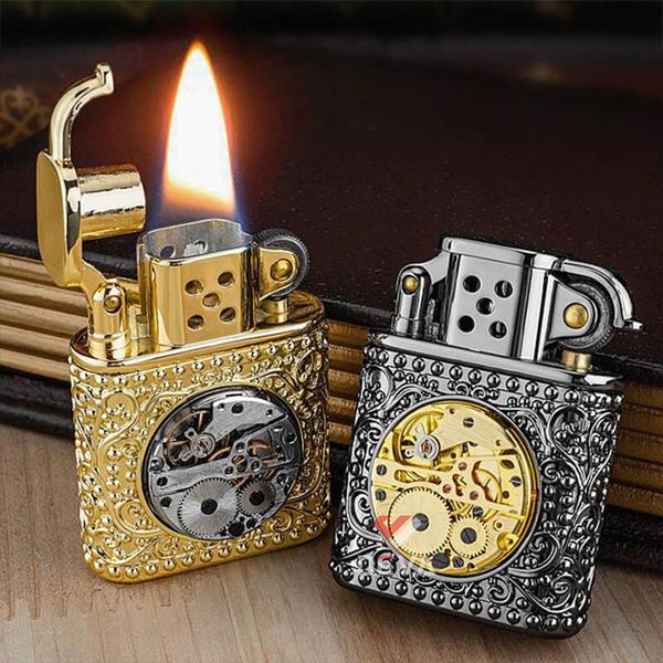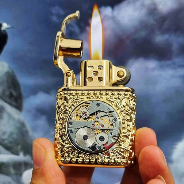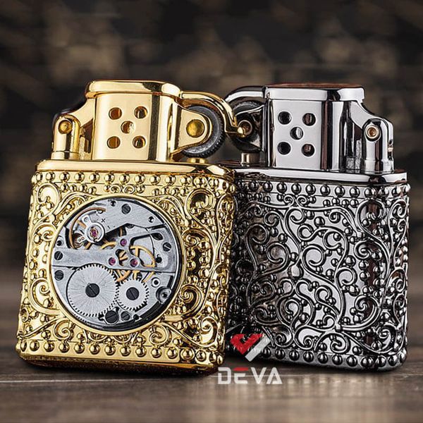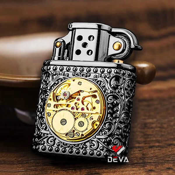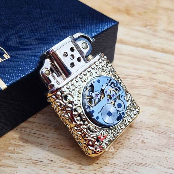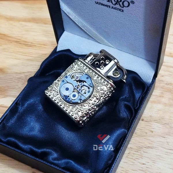 Bật lửa xăng đá chính hãng Zorro ốp kết cấu bánh răng đồng hồ cơ Z506-638