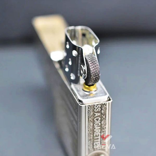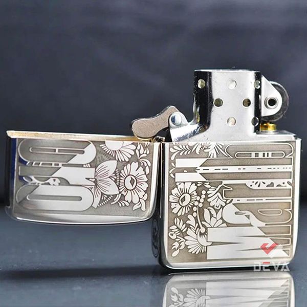 - Vỏ Zippo: Dòng vỏ bạc nguyên khối dày hơn 1.5 dòng tiêu chuẩn, đầu tròn, mộc đáy lồi. Bản lề 5 chấu.
