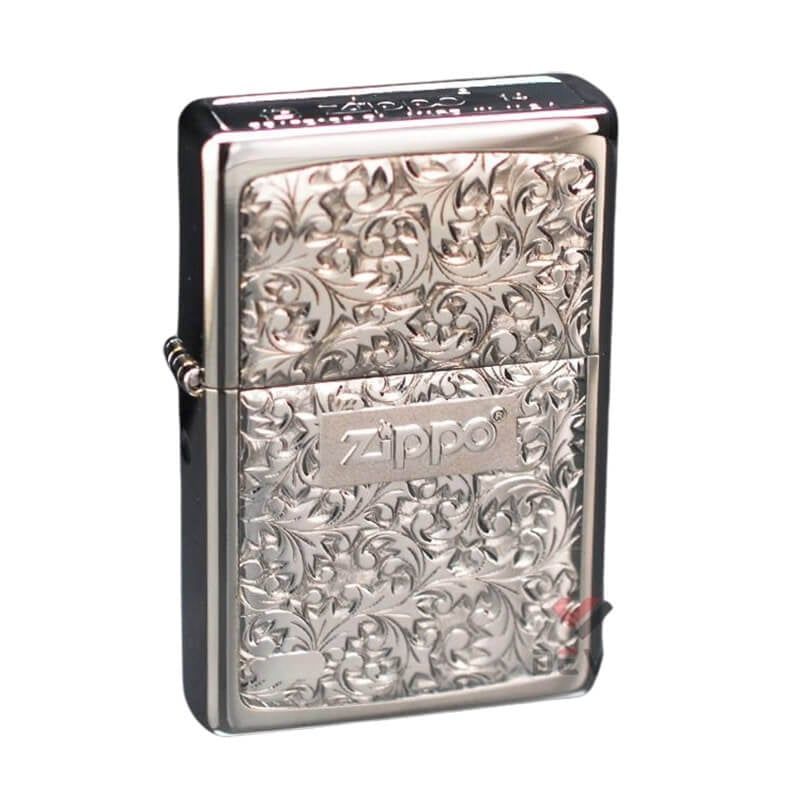 Zippo 2 Mộc Đáy Bottom Up Hoa Văn Silver Plate Titanium Coating ZN159