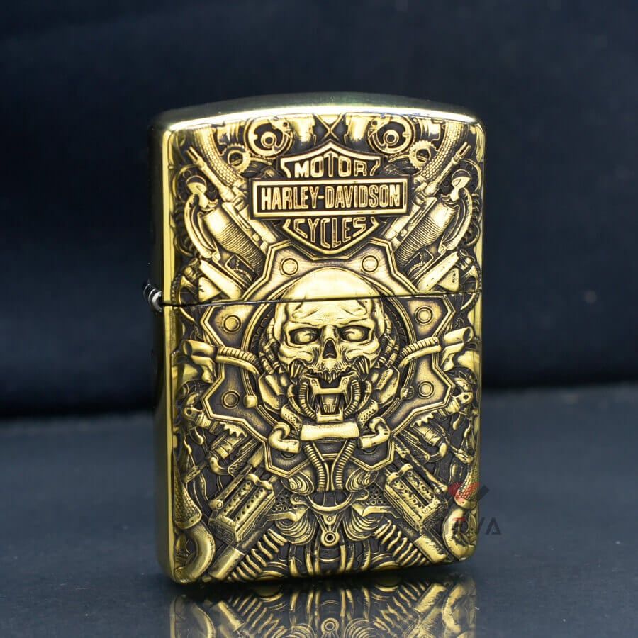 Chiếc Zippo ZD44 của Deva Shop mang chủ đề hãng xe motor Harley-Davidson nổi tiếng. Mặt trước khắc hình ảnh một cỗ máy kỳ dị với hàng loạt chi tiết động cơ bao quanh chiếc đầu lâu đặc biệt. Mặt sau khắc hình chiếc xe motor và Logo đặc trưng của hãng xe. Nếu anh em là người đam mê dòng xe phân khối lớn cũng như thương hiệu Harley-Davidson thì chiếc Zippo ZD44 thực sự là một món quà tuyệt vời mà Deva Shop dnahf cho anh em.