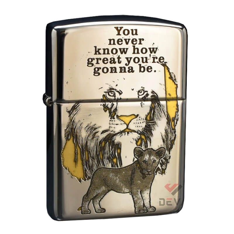 Chiếc Zippo ZN210 được khắc chủ đề vua sư tử Simba với lời dạy bảo của vua cha Mufasa. Các chi tiết trên bật lửa được tạo hình đầy phức tạp mà vẫn giữ được sự sắc nét, tất cả tạo nên hình ảnh vô cùng sinh động về vị vua sư tử. Thần thái con sư tử trên chiếc Zippo ZN210 toát lên vẻ uy quyền và khôn ngoan.