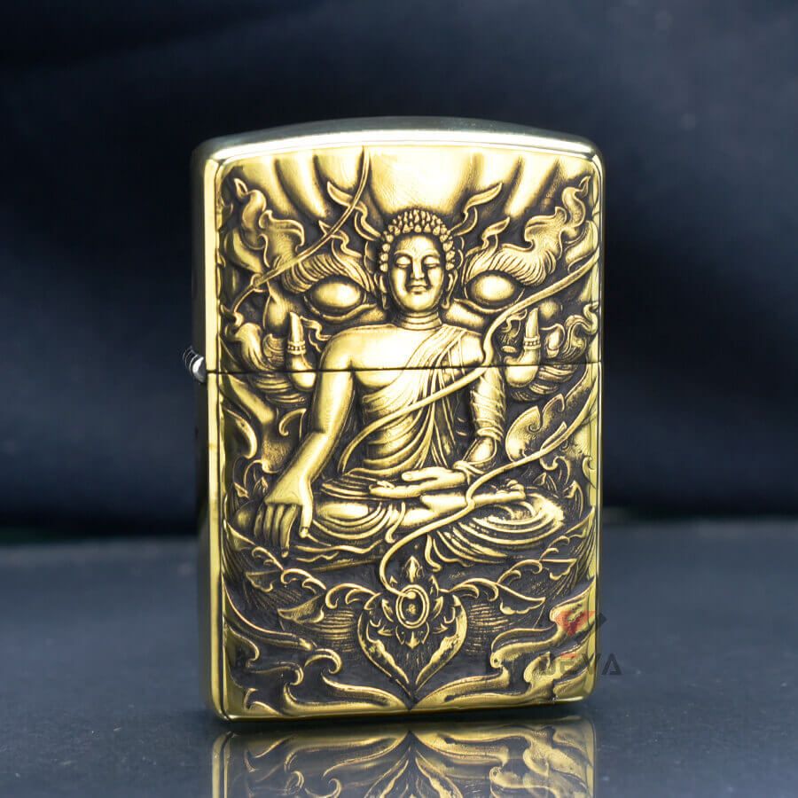 Bật Lửa Mỹ Độc Đáo Zippo Armor Khắc Hình Đức Phật Như Lai Ngự Đài Sen ZD40