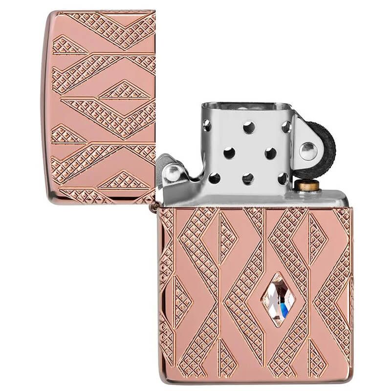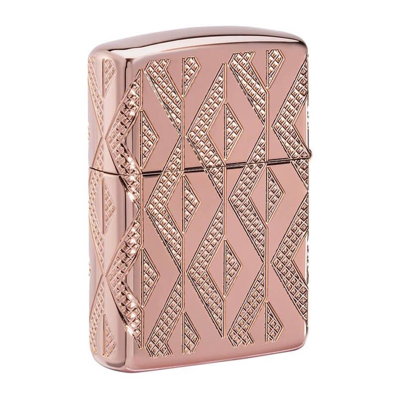 Bật Lửa Mỹ Chính Hãng Zippo Armor Vàng Hồng Khắc Hoa Văn Ốp Kim Cương Geometric Diamond Z19