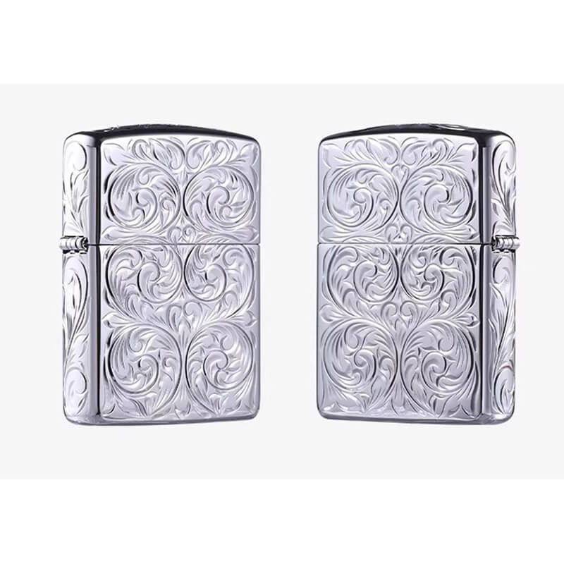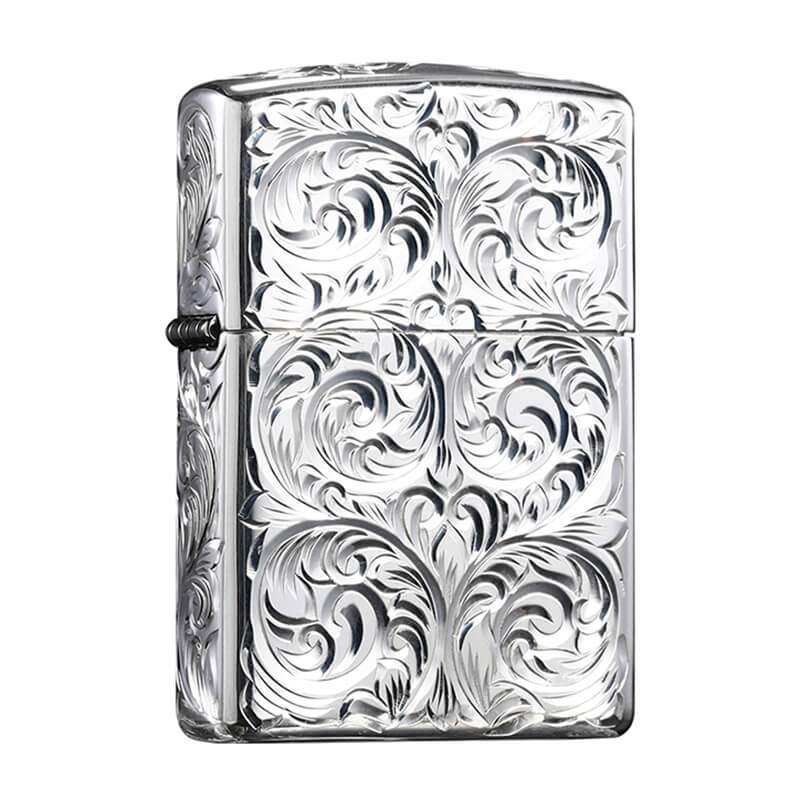 Đặc trưng cho những chiếc Zippo Armor là âm thanh nổi bật mỗi khi mở nắp được thể hiện toàn bộ trên chiếc bật lửa ZN127 của Deva Shop. Các mặt của chiếc Zippo ZN127 được khắc hoa văn dnagj cổ điển đối xứng nhau, bề ngoài mạ bạc vô cùng tinh tế.