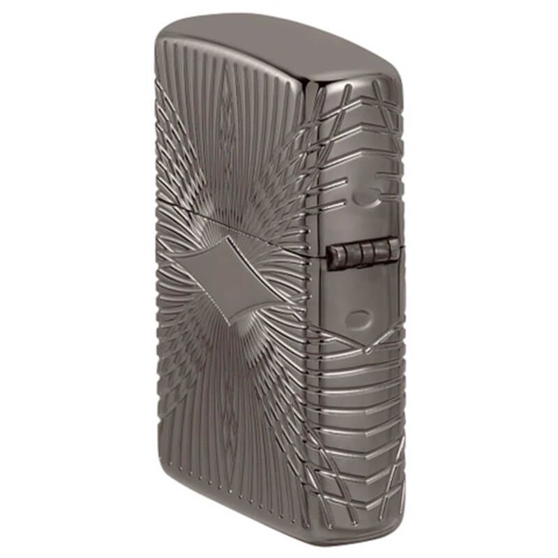 Chiếc Zippo Z24 của Deva Shop nằm trong số những bản Zippo armor đặc biệt với màu đen black ice sâu thẳm ốp đá pha lê cao cấp. Mang ngôn ngữ thiết kế hiện đại, những hoa văn phức tạp trên thân Zippo Z24 được khắc bằng phương pháp hiện đại Multicut 360 độ tạo nên sự sắc nét và chi tiết. Mặt trước ốp một viên pha lê màu trắng tinh khiết hình thoi tạo điểm nhấn nổi bật trên nền đen sang trọng.