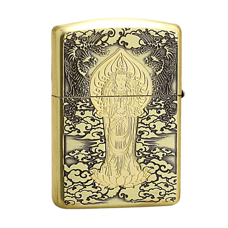 Bật Lửa Zippo Armor Ốp Gỗ Chủ Đề Phật Giáo Cánh Cửa Hạnh Phúc Quan Âm Bồ Tát ZN334: