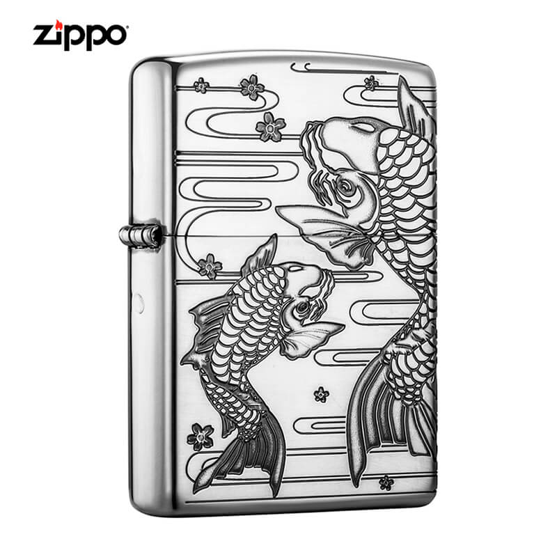 Zippo bạc khắc hình cá chép ZN172