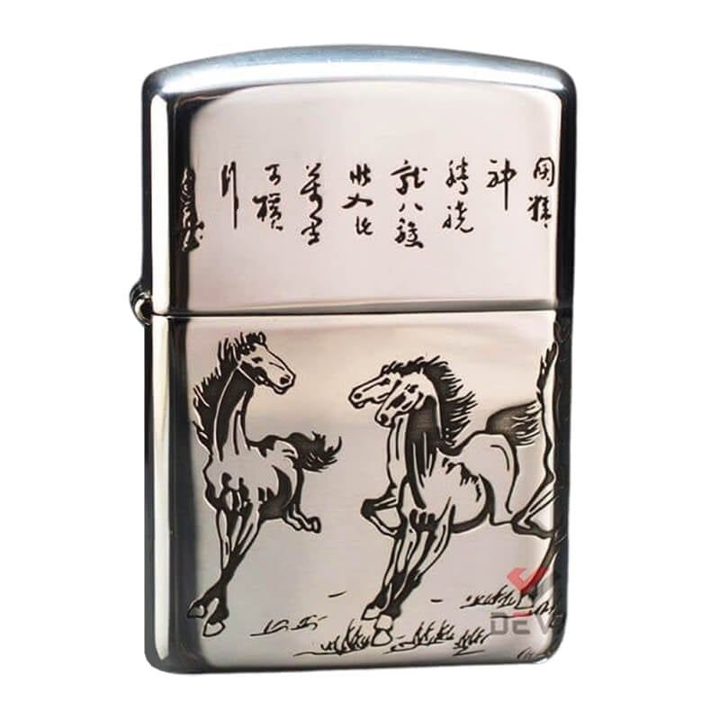 Zippo Bạc Khối Armor Khắc Đàn Ngựa Mã Đáo Thành Công BK79