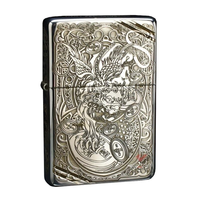 Hình ảnh Kỳ lân ý nghĩa là vậy, nay đã được Deva mang đến trên chiếc Zippo vô cùng đẹp mắt BK84. Hình Kỳ lân được khắc hoa trong trạng thái xung quanh là tiền vàng, biểu hiện cho tài lộc vào người . Không những giá trị khi đây là một chiếc Bạc khối mà những họa tiết hoa văn cũng là một trong những mẫu thiết kế hoa văn đẹp nhất trong dòng Zippo bạc khối.