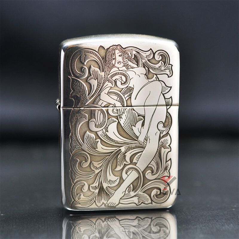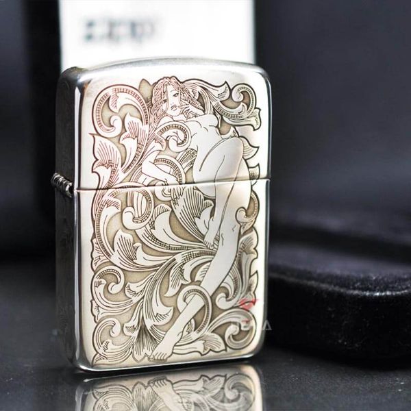 Và nhắc đến zippo thì chắc hẳn dòng Zippo có giá trị cũng như vẻ đẹp hàng đầu chắc hẳn là zippo bạc khối . Để đáp ứng nhu cầu sử dụng cũng như sưu tầm của anh em Deva xin giới thiệu cho anh em mẫu BK07, được thiết kế với hình ảnh hoa văn xung quanh cô gái tạo lên một chiếc Zippo rất đặc biệt.