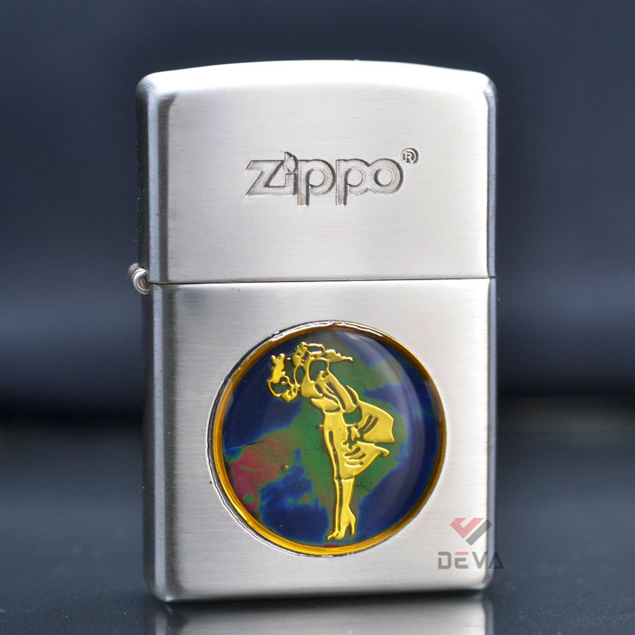 Bật Lửa Mỹ xuất Nhật Zippo Bạc Ốp Emblem Đổi Màu Theo Nhiệt Độ ZN360