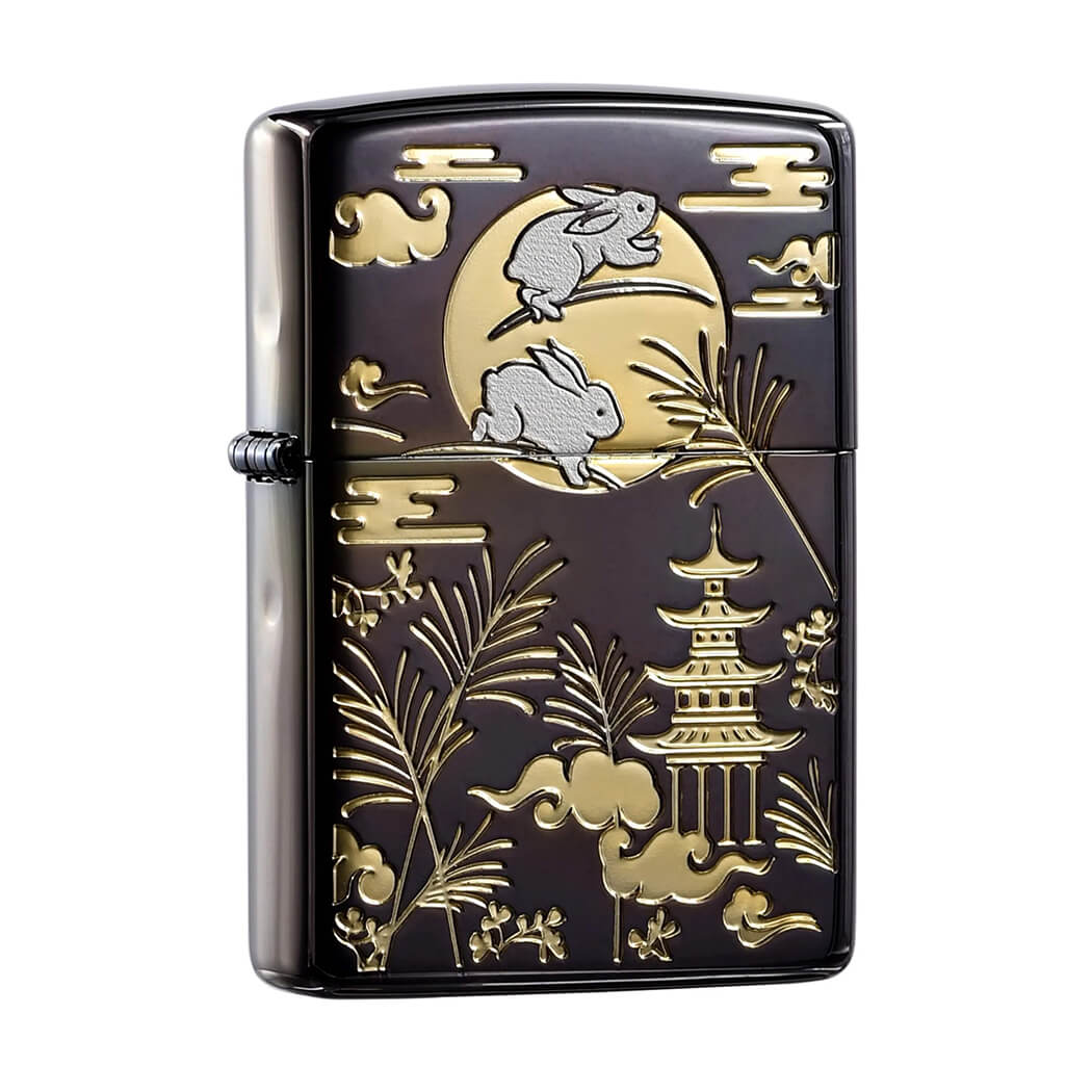 Bật Lửa Mỹ xuất Nhật Zippo Bản Giới Hạn Khắc Tranh Mạ Vàng Thỏ Ngọc Dưới Trăng ZN165