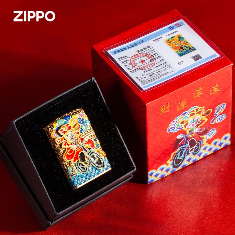Thần Tài sẽ gõ cửa nhà với chiếc Zippo ZN85 từ Deva Shop. Chiếc bật lửa ZN85 được bọc lưới mạ vàng và ốp hình tượng Thần Tài đang cưỡi chiếc xe đạp mang theo tài lộc và may mắn đến cho mọi nhà.