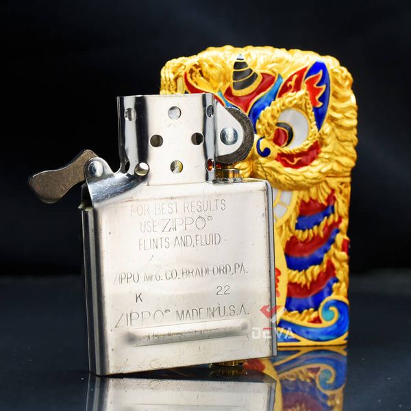 - Ruột Zippo: Ruột trắng/vàng không gỉ tiêu chuẩn với buồng đốt 16 lỗ (8 lỗ mỗi bên).
