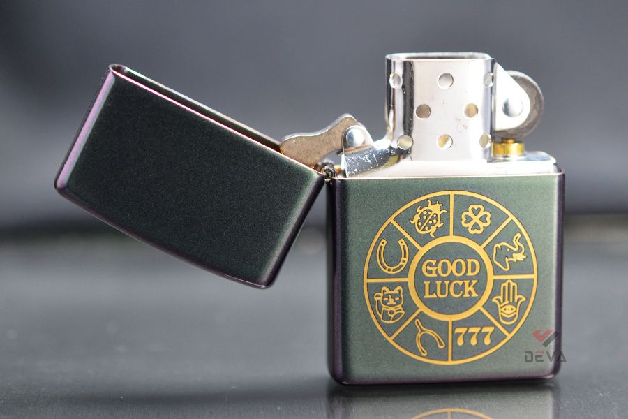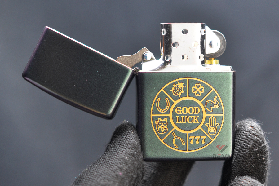 Deva Ship xin giới thiệu đến cho anh em chiếc Zippo vô cùng may mắn Z394. Trên nền zippo đồng thau quen thuộc, chiếc Z394 được bao phủ bằng lớp sơn tĩnh điện với sắc xanh may mắn. Mặt trước Zippo được khắc 8 biểu tượng may mắn đặc trưng và nổi tiếng trên toàn thế giới. Hy vọng chiếc Zippo này sẽ khiến vận may mỉm cười với anh em!