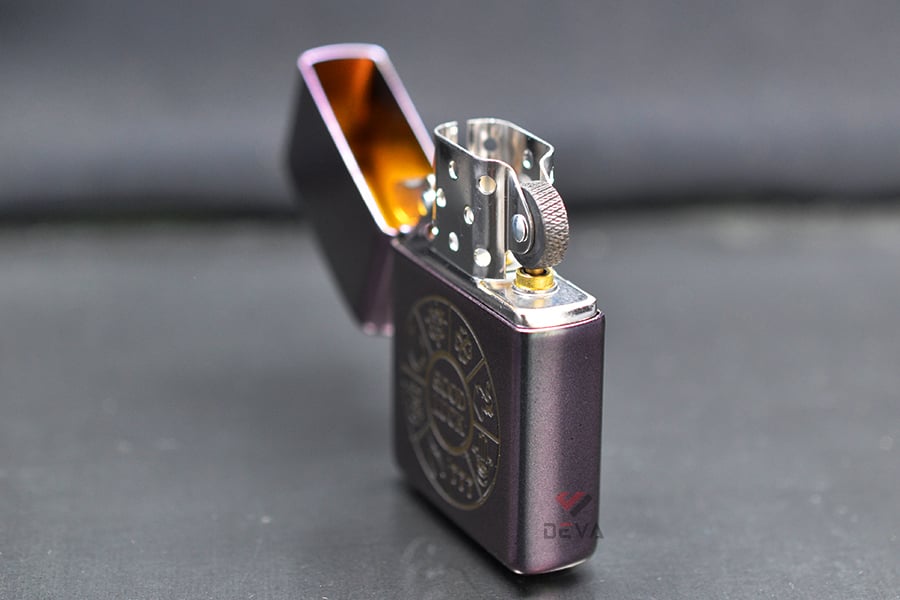 - Ruột Zippo: Ruột trắng/vàng không gỉ tiêu chuẩn với buồng đốt 16 lỗ (8 lỗ mỗi bên).