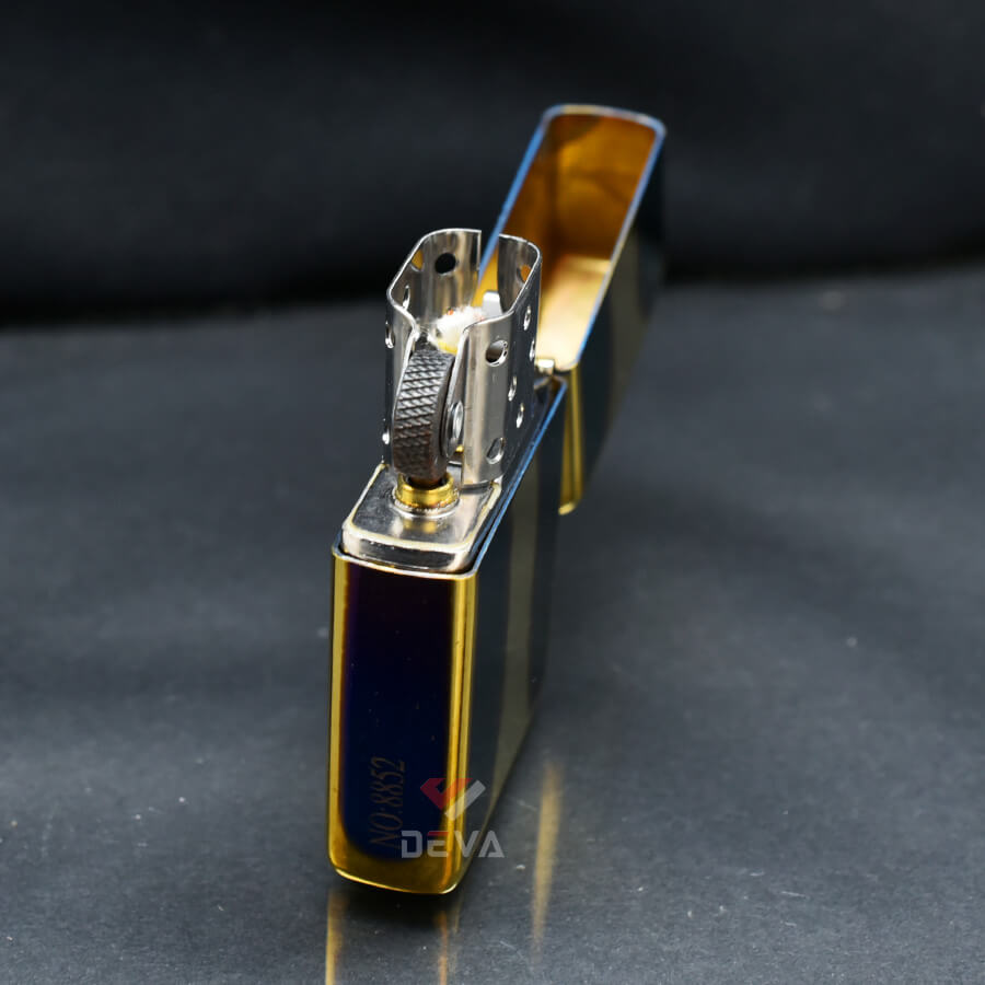 - Ruột Zippo: Ruột trắng/vàng không gỉ tiêu chuẩn với buồng đốt 16 lỗ (8 lỗ mỗi bên).