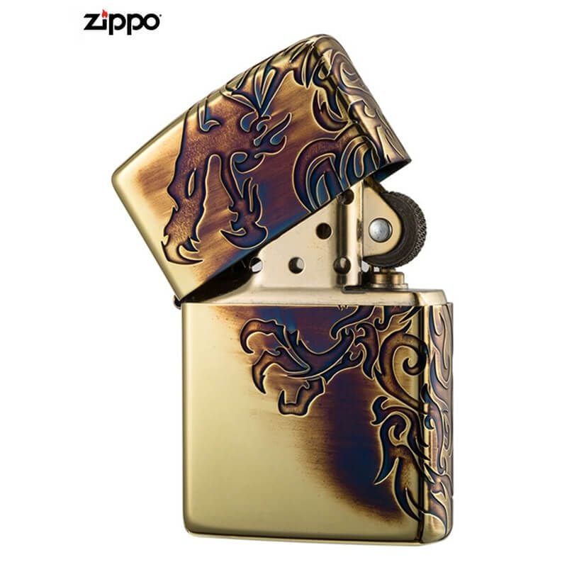 Bật Lửa Mỹ xuất Nhật Zippo Đồng Hun Khói Khắc Chìm Rồng Lửa ZN40