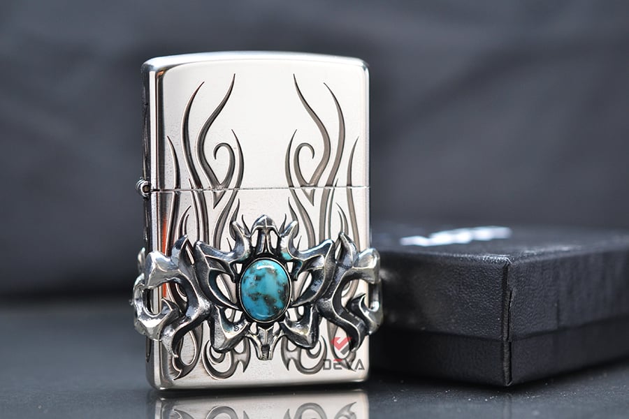 Bật Lửa Zippo Hoa Văn Cổ Ốp Lam Ngọc ZN315: