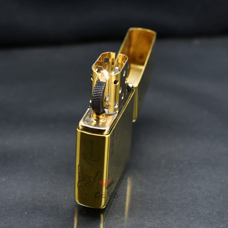 - Ruột Zippo: Ruột trắng/vàng không gỉ tiêu chuẩn với buồng đốt 16 lỗ (8 lỗ mỗi bên).