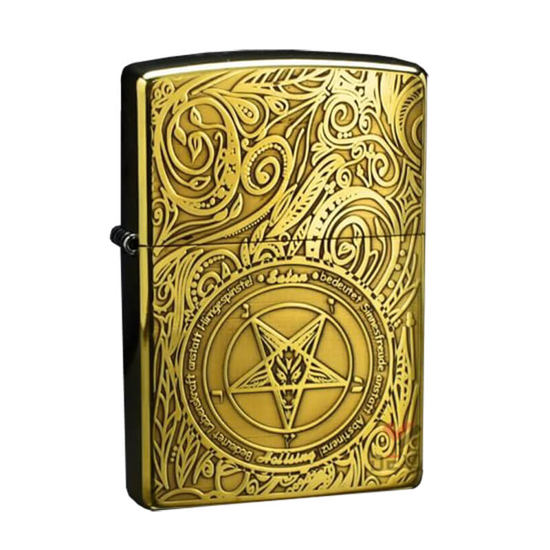 Chiếc bật lửa ZN385 của Deva Shop mang chủ đề thiên thần nổi loạn Satan với hình ngôi sao 5 cánh ngược, đầu dê và hoa văn huyền bí, bên hông khắc câu nói nổi tiếng của vị đọa thiên sứ này.