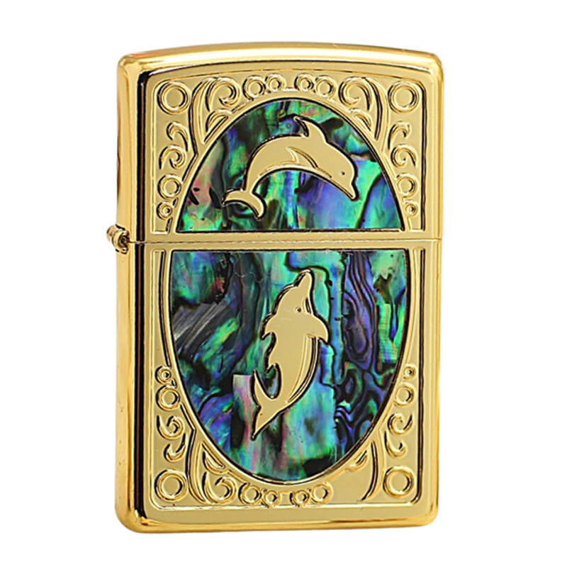 Bật Lửa Mỹ xuất Nhật Zippo Khảm Xà Cừ Khắc Đôi Cá Heo Nhảy Múa ZN58