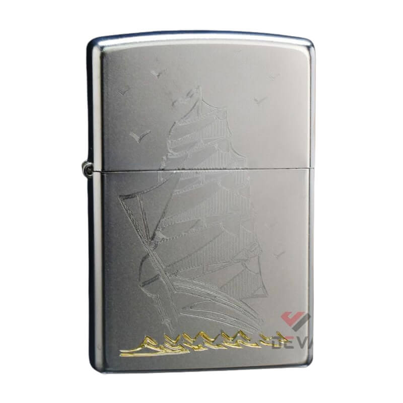 Bật Lửa Mỹ Chính Hãng Zippo Mạ Satin Khắc Hình Thuyền Buồm Cổ ZK15