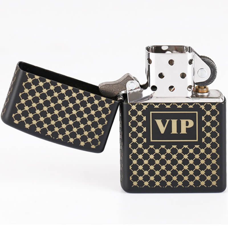 Mẫu bật lửa Zippo sang trọng Z193 thực sự thích hợp để làm bạn đồng hành cùng anh em! Bề bật lửa được phủ sơn đen mờ, tạo cảm giác rất sâu và chắc chắn giúp cho anh em có thể cầm nắm và thao tác dễ dàng không trơn trượt. Hoa văn dạng lưới màu vàng bao xung quanh tuy đơn giản nhưng rất sang. Dòng chữ VIP chính giữa Zippo như điểm nhấn, lời khẳng định cho đẳng cấp của chủ sở hữu. Tất cả đều hoàn hảo!