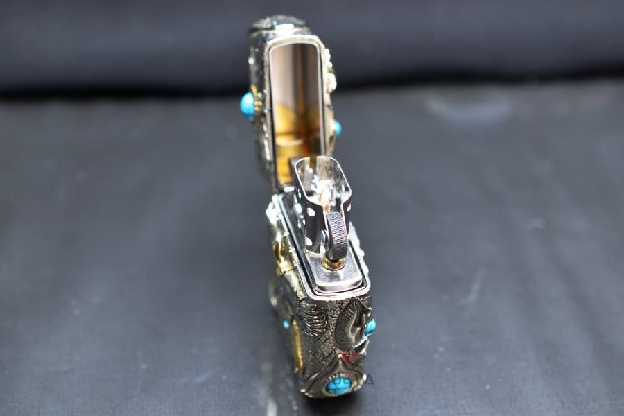- Ruột Zippo: Ruột trắng/vàng không gỉ tiêu chuẩn với buồng đốt 16 lỗ (8 lỗ mỗi bên).