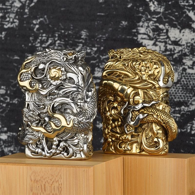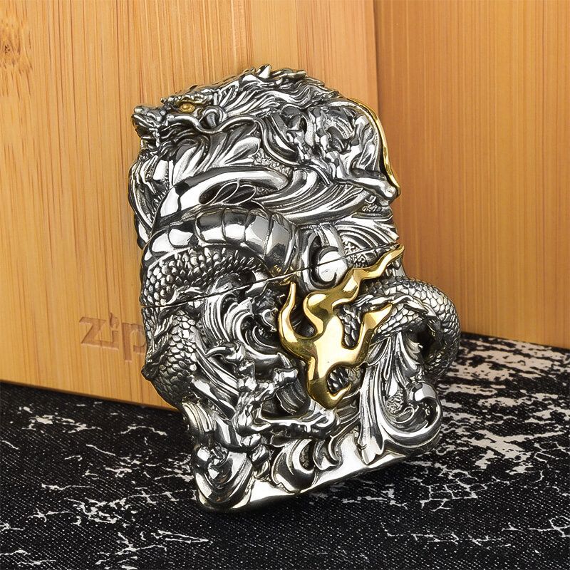 Deva Shop xin giới thiệu cho anh em mẫu sản phẩm bật lửa độc đáo về chủ đề Rồng Cầm Châu là Zippo ZD58. Bên ngoài bật lửa là một bức tượng Rồng đang cuộn mình trong làn mây ngọn gió, chân đang cầm Hạt Châu lớn. Khi mang theo bật lửa ZD58, anh em coi như mang theo một vật hộ thân trong người, hoá giải những điều xấu cho bản thân. Không những vậy còn tăng lên may mắn để nắm bắt được những cơ hội và tài lộc cho mình.