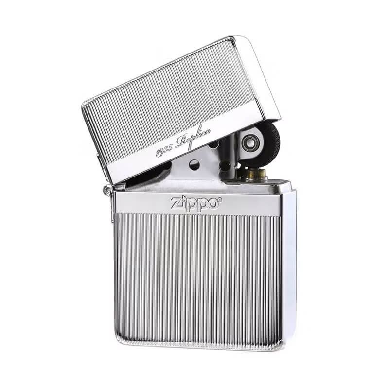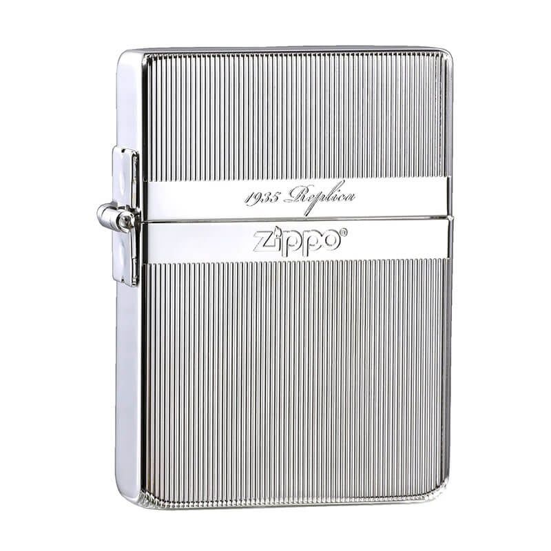 Bật lửa Zippo Replica 1935 là mẫu sản phẩm được sao chép lại mẫu bật lửa Zippo cổ điển ra đời vào năm 1935, dòng sản phẩm có những đặt điểm như: phần vỏ được làm bằng chất liệu đồng thau và nền mạ crom ,có các cạnh vuông, bản lề 3 chấu nằm ngoài thân vỏ, phần ruột được làm bằng thép có buồng đốt 16 lỗ ,bánh xe đánh lửa được tán dính bởi một chốt rỗng.