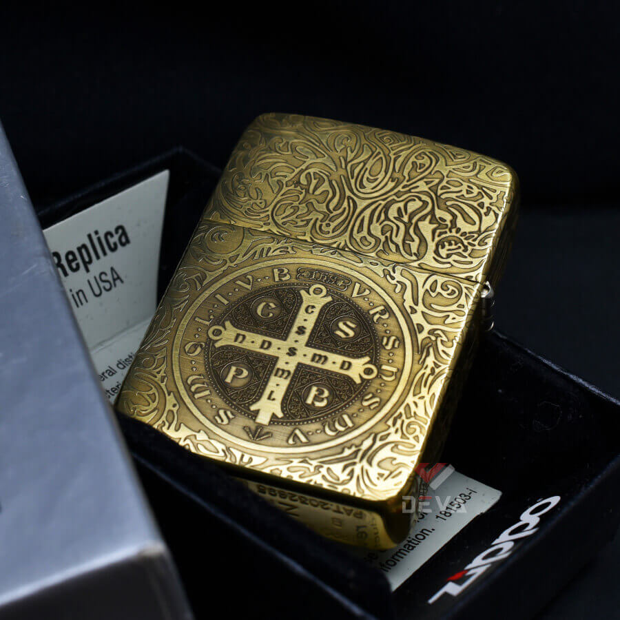 Bật Lửa Mỹ xuất Nhật Zippo Tái Bản 1941 Khắc Chủ Đề Cây Thánh Giá Trừ Tà Constantine ZN357