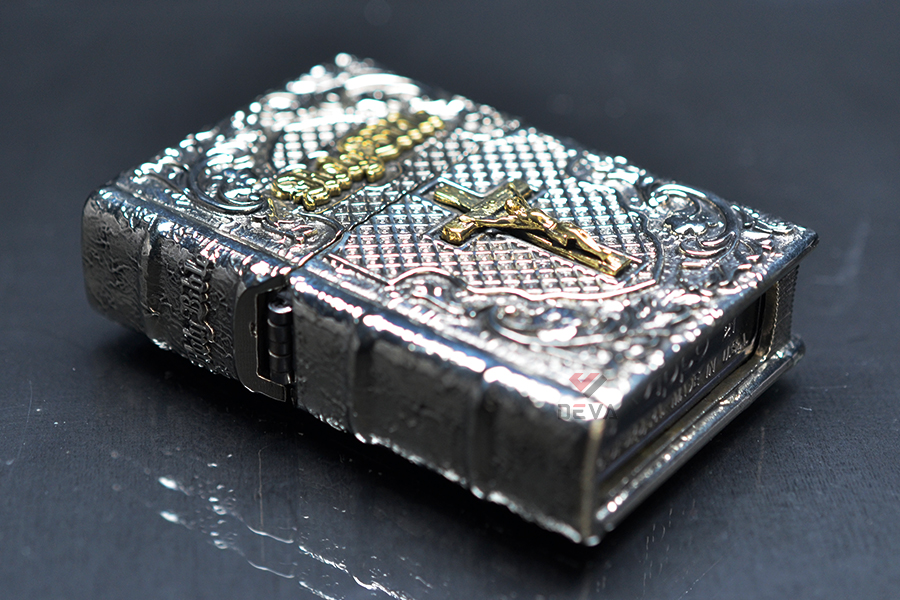 Không cần giới thiệu nhiều nữa, anh em chắc chắn không xa lạ gì với Kinh Thánh. Mẫu Zippo ZD59 tạo hình một quyển Kinh Thánh hoàn chỉnh theo phong cách cổ. Mặt trước có hình ảnh Chúa Jesus bị đóng đinh trên cây thập giá. Các chi tiết được mài giũa và gia công tỉ mỉ, chắn chắn. Nếu anh em là người bên Đạo, đây sẽ là món quà tuyệt vời để mang theo bên mình!