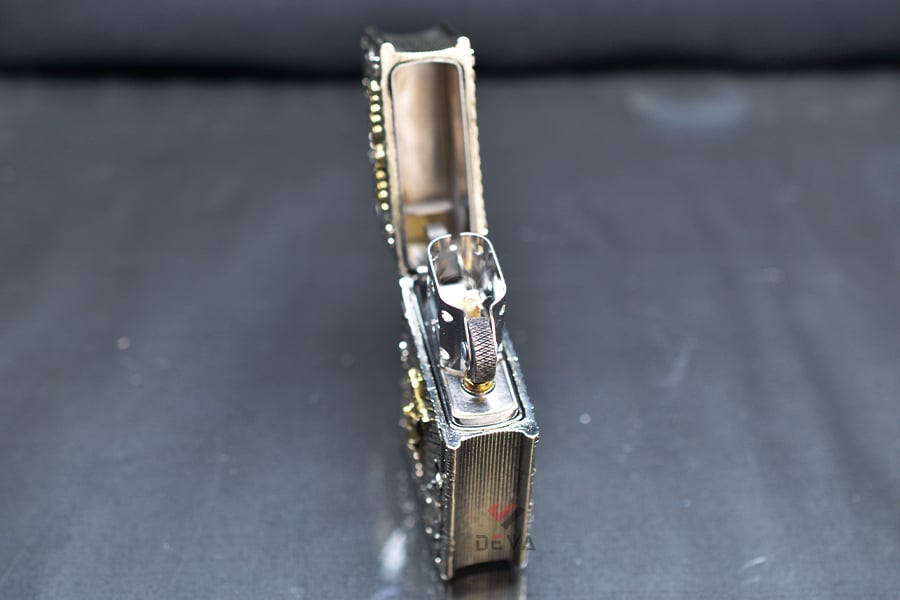 - Ruột Zippo: Ruột trắng/vàng không gỉ tiêu chuẩn với buồng đốt 16 lỗ (8 lỗ mỗi bên).