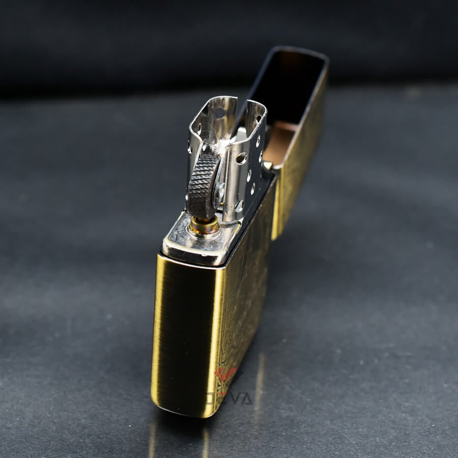 - Ruột Zippo: Ruột trắng/vàng không gỉ tiêu chuẩn với buồng đốt 16 lỗ (8 lỗ mỗi bên).
