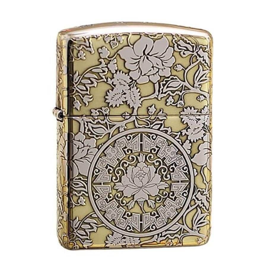 Zippo Vàng Khắc Nổi Hoa Mẫu Đơn ZK60