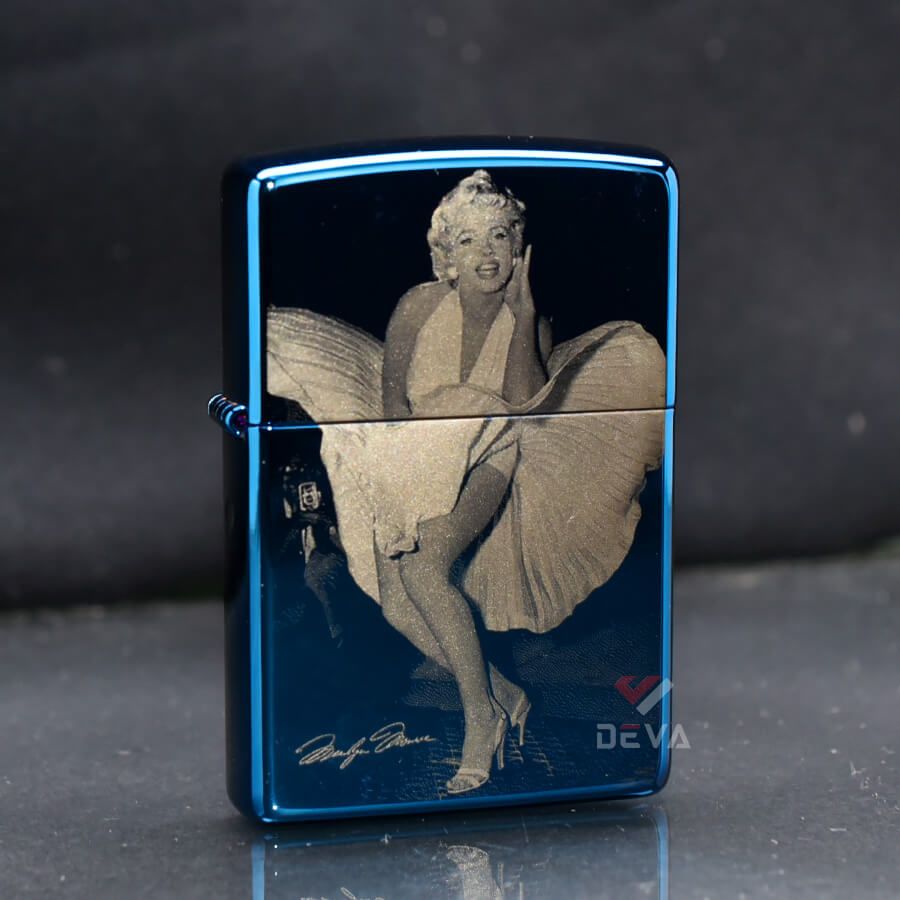 Bật Lửa Mỹ xuất Nhật Series Zippo Xanh Sapphire Chủ Đề Nữ Minh Tinh Điện Ảnh Marilyn Monroe ZN279