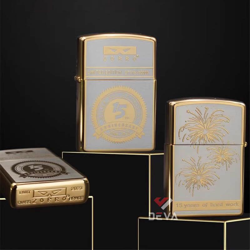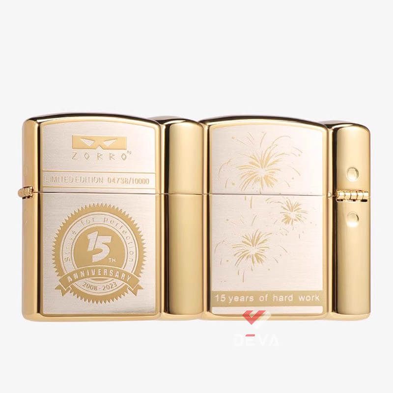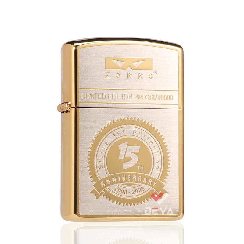 Bật lửa xăng đá chính hãng Zorro phiên bản giới hạn mạ vàng kỷ niệm 15th năm thành lập Z2-1002