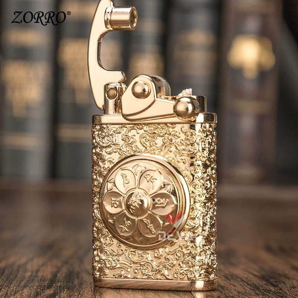 Bật Lửa Xăng Đá Chính Hãng Zorro hoa văn nổi gắn vòng xoay các chủ đề Z592-603